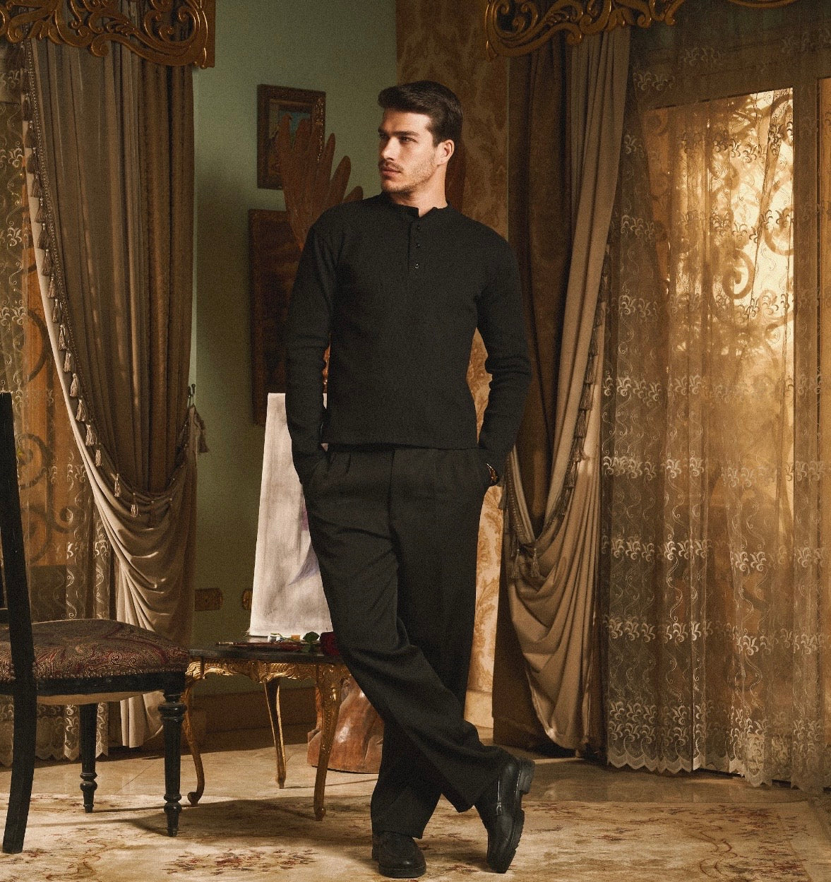 Black Henley Ribbed Shirt