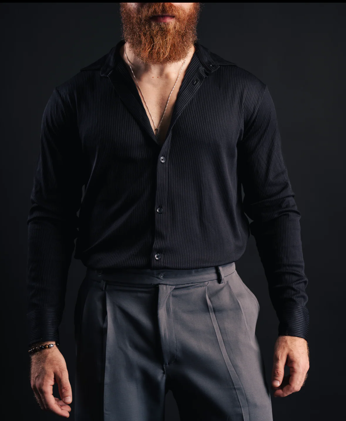 Black Slim long sleeve Pleated shirt—