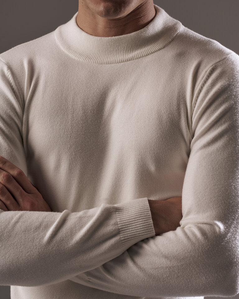 White Mock Neck Knitted Sweater